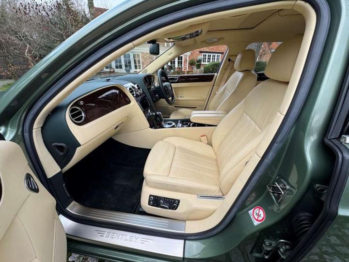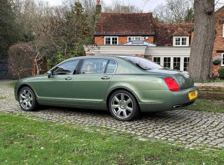 This exceptionally low mileage (8,986 miles) 2007 Bentley Continental Flying Spur was purchased from new by the Titled owner in August 2007 and has been used soleley for special occasions. This solitary owner has been a serious collector and car enthusiast for many years and the car has formed part of an interesting and diverse collection. Purchased new from Jack Barclay at a cost of £136,720, the car is finished in a special order colour of Alpine green with a stunning unmarked interior finshed in Magnolia hide with Spruce Dash top, best quality Wilton carpet throughout and Burr Walnut veneered rear picnic tables. The specification further includes a full length rear centre console at a cost of over £4,000, Satelite navigation, TV facility, an electric glass sun roof, 20" chome wheels, a Nav Trac security system and everything else one would expect in a car of this superior quality. It comes supplied with its original Bentley service book with 14 service stamps and a chronologically kept history file and15 mot certificates showing the very gradual progression of the recorded mileage. Unrepeatable value at £22,950