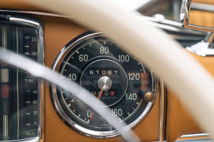 • neben den gesuchten Scheibenbremsen ist der Wagen mit Europäischen Scheinwerfern, Rudge Adapter Felgen, zuschaltbarer Servolenkung mit kleinem Lenkrad, einem Becker Mexico Radio, elektrischem Zusatzlüfter sowie abnehmbaren Schroth Sitzgurten ausgestattet