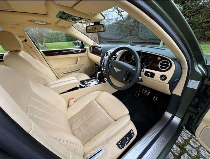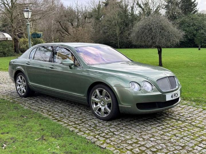 This exceptionally low mileage (8,986 miles) 2007 Bentley Continental Flying Spur was purchased from new by the Titled owner in August 2007 and has been used soleley for special occasions. This solitary owner has been a serious collector and car enthusiast for many years and the car has formed part of an interesting and diverse collection. Purchased new from Jack Barclay at a cost of £136,720, the car is finished in a special order colour of Alpine green with a stunning unmarked interior finshed in Magnolia hide with Spruce Dash top, best quality Wilton carpet throughout and Burr Walnut veneered rear picnic tables. The specification further includes a full length rear centre console at a cost of over £4,000, Satelite navigation, TV facility, an electric glass sun roof, 20" chome wheels, a Nav Trac security system and everything else one would expect in a car of this superior quality. It comes supplied with its original Bentley service book with 14 service stamps and a chronologically kept history file and15 mot certificates showing the very gradual progression of the recorded mileage. Unrepeatable value at £22,950